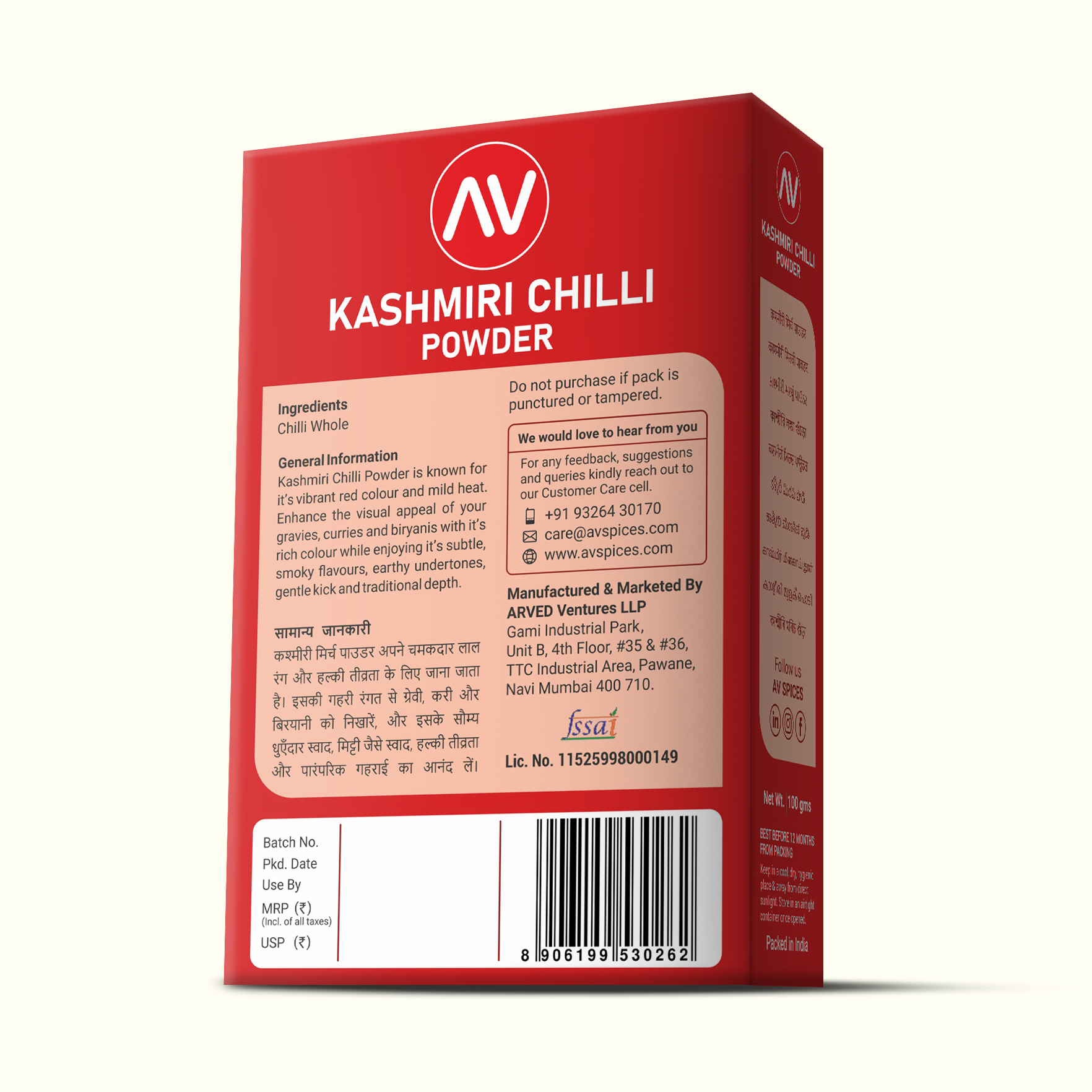 A vibrant red spice known for its mild heat and rich color, widely used in Indian cuisine to add a subtle warmth and striking hue without overpowering heat.